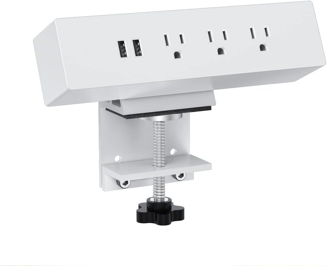 - 【Desk Outlets with USB Port】desk power strip with 3 AC outletS, 2 USB ports. Allow you charge multiple devices at the same time and keep desk organized.