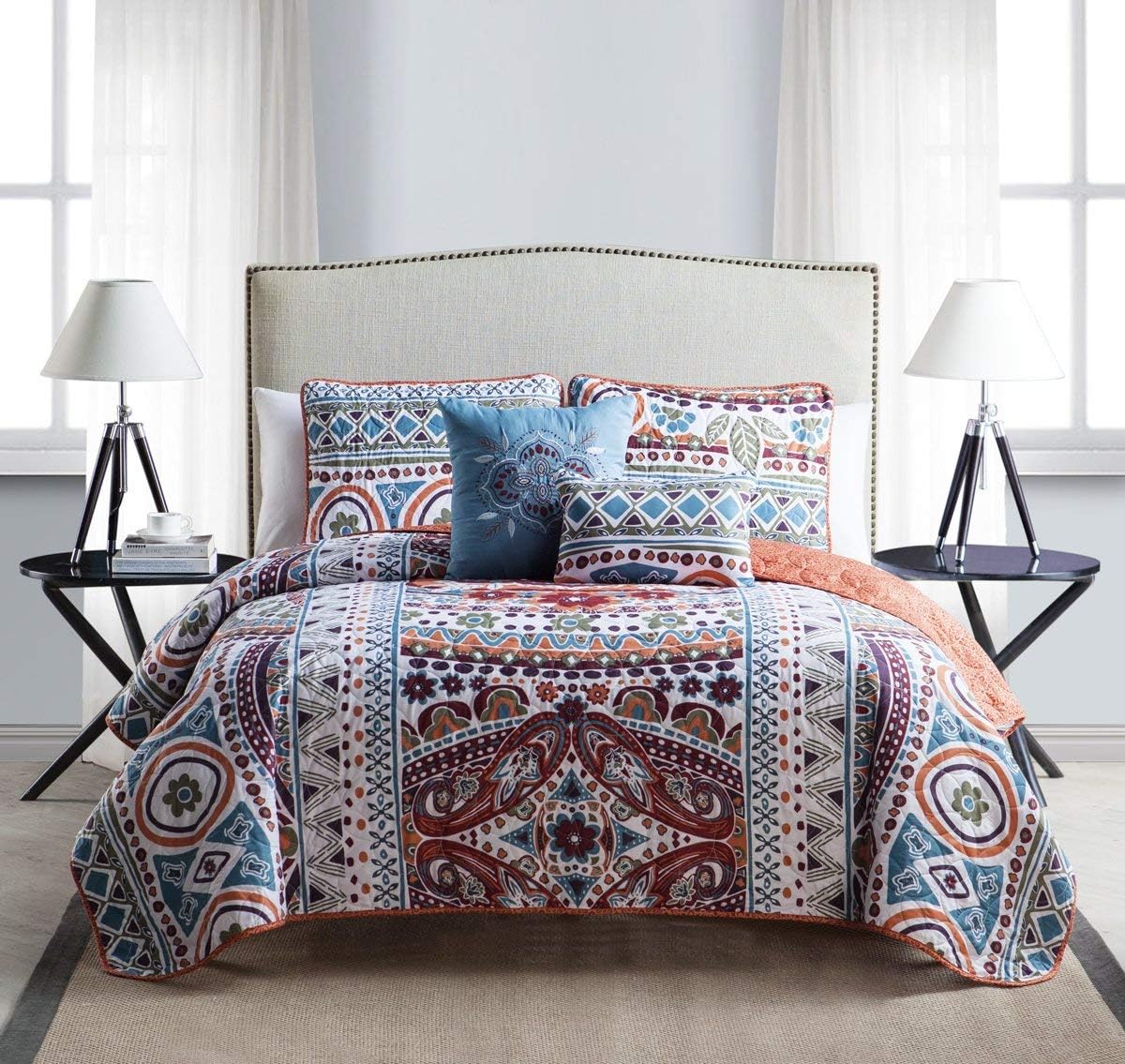 - FEATURES: Sophisticated and effortlessly stylish, this cozy and versatile quilt set features blue and orange medallions, paisley, and geometric prints for a bold, boho look you can mix and match