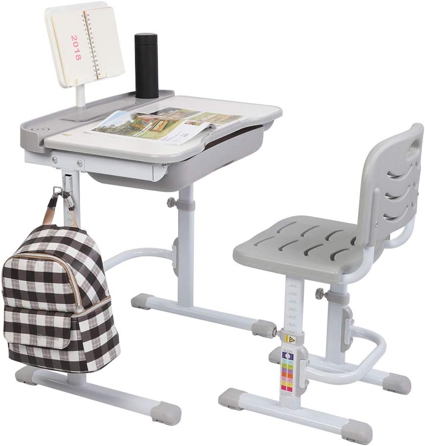 Customer reviews Kids Desk and Chair Set, Height Adjustable Student Study Table and Chair Set with Tilting Desktop for Boys Girls (Grey)
